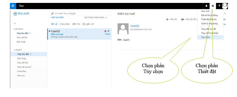Để cấu hình thông tin người dùng, chọn biểu tượng bánh răng -> Tùy chọn