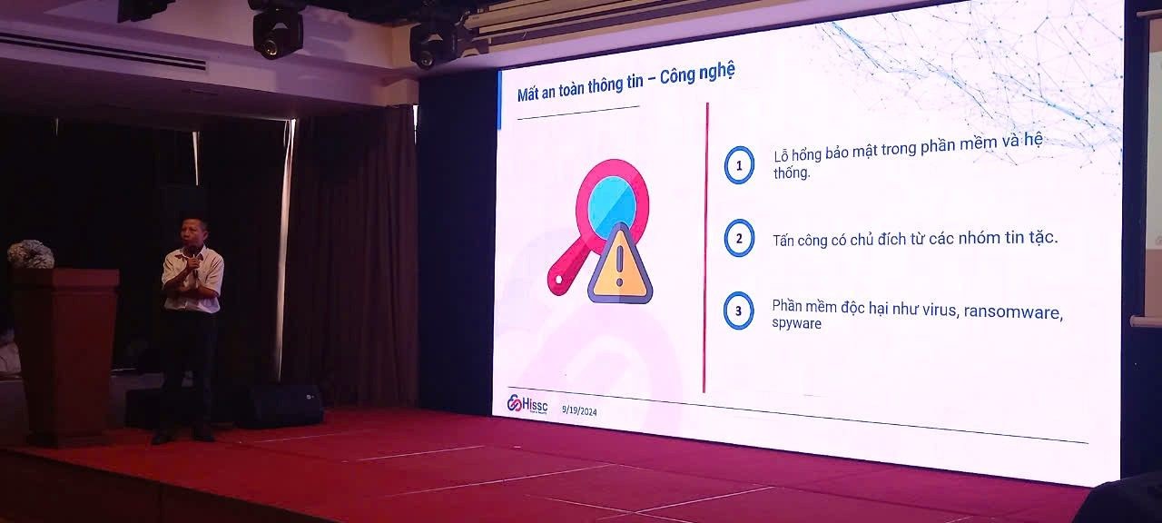 Đại diện HISSC - ông Lê Minh Tuấn - Phó Tổng Giám đốc HISSC, đã mang đến hội nghị bài Báo cáo về Bảo đảm an toàn thông tin cho các hệ thống thông tin kiểm soát bệnh tại TP.Hồ Chí Minh - thách thức và giải pháp.