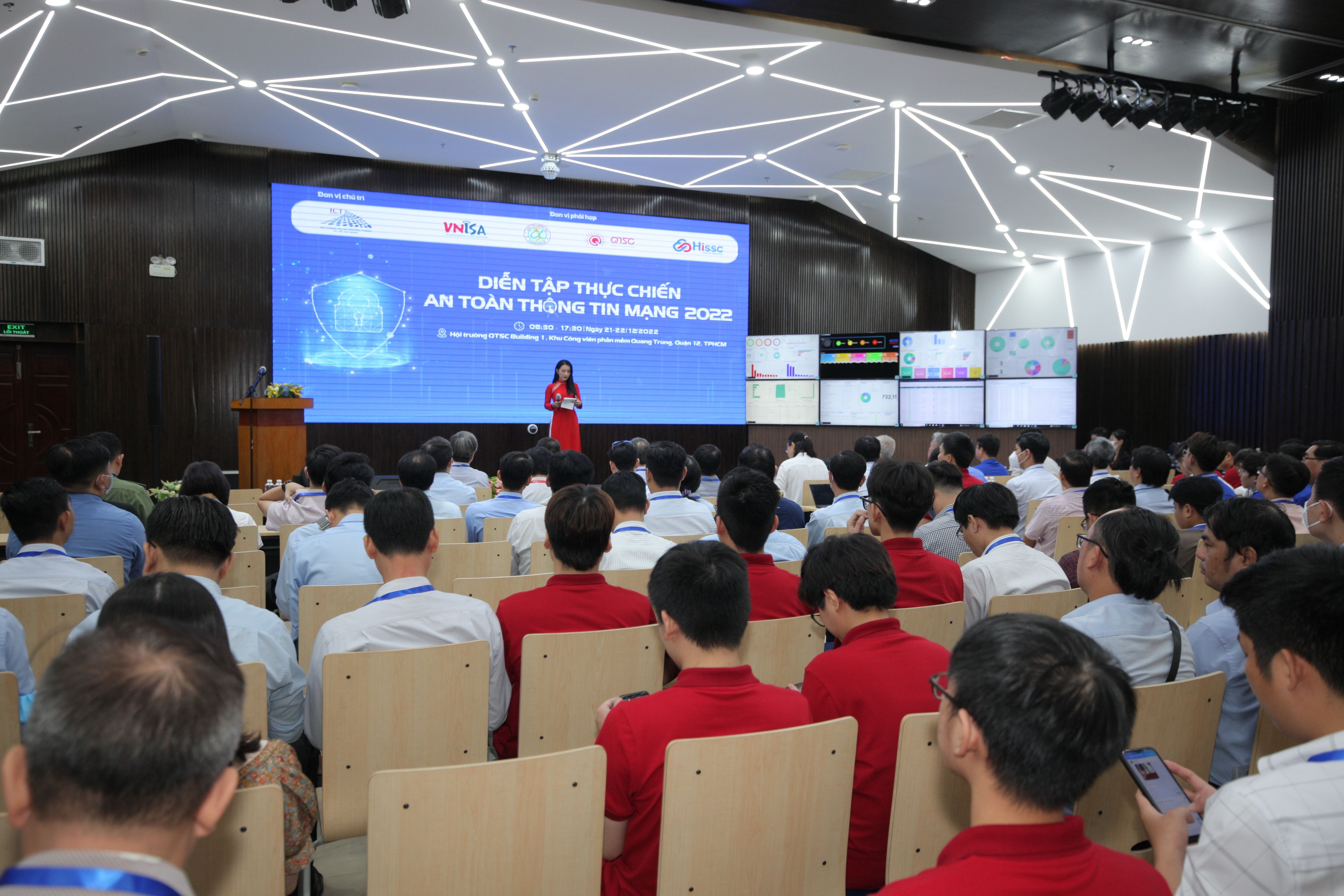 Sáng ngày 21/12/2022, ngày đầu tiên của chương trình “Diễn tập thực chiến an toàn thông tin mạng” đã diễn ra với sự tham gia của gần 120 khách mời là các Quý Đại biểu đến từ Sở Thông tin và Truyền thông TP.HCM và Sở Du lịch TP.HCM; những cán bộ phụ trách công nghệ thông tin và lực lượng cán bộ chuyên trách của các đơn vị cùng với đội ứng cứu an toàn thông tin TP.HCM.