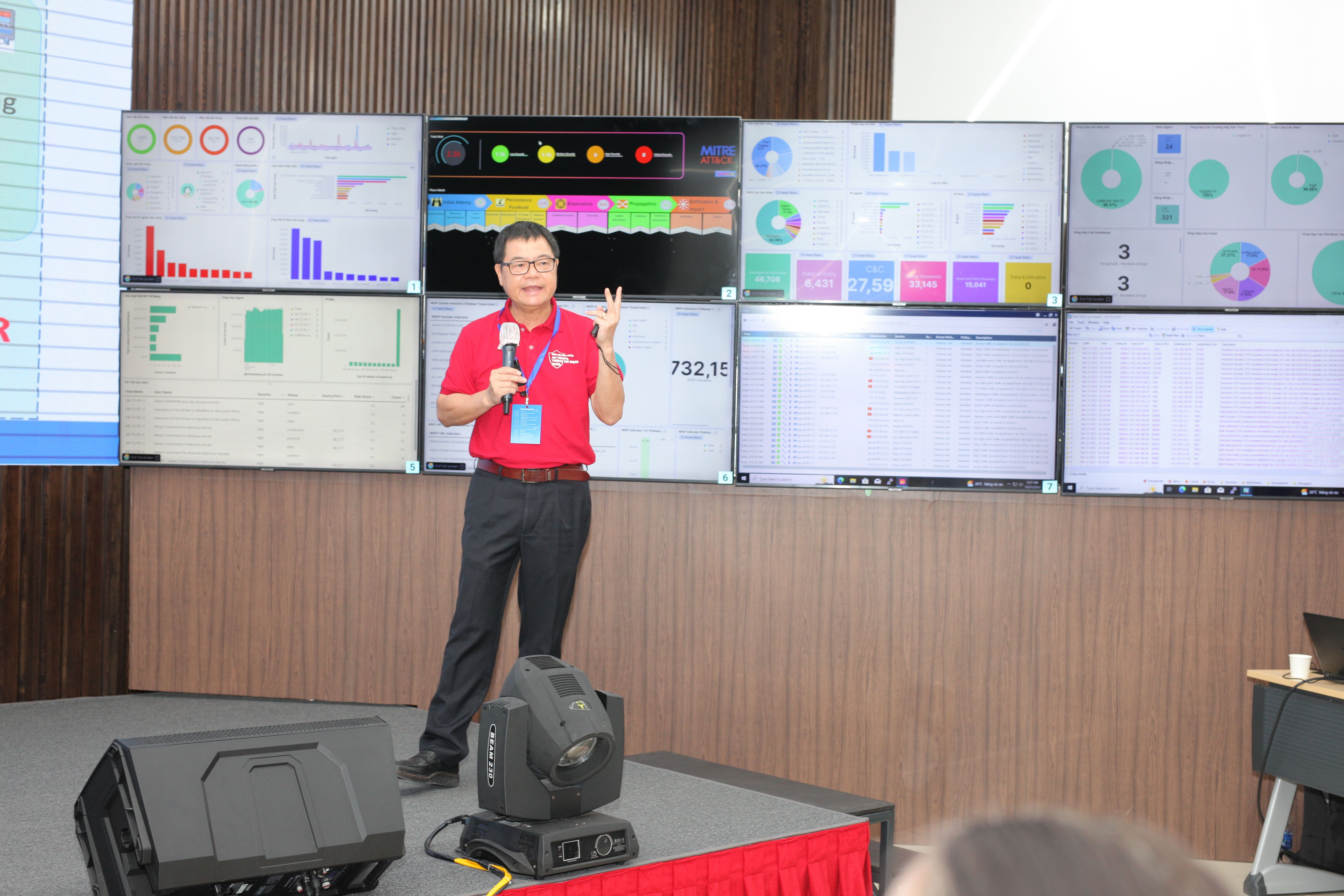 Nối tiếp trong chương trình sáng ngày 21, những kiến thức tổng quan về an toàn thông minh mạng, giới thiệu về hệ thống SOC đã được chia sẻ đến với các Quý Đại biểu, Quý khách mời và học viên. Phần diễn tập thực chiến của nhóm 1 sẽ được bắt đầu từ 13g00 – 16g30 chiều ngày 21 và nhóm 2 sẽ bắt đầu từ 8g00 – 11g30 ngày 22/12/2022.